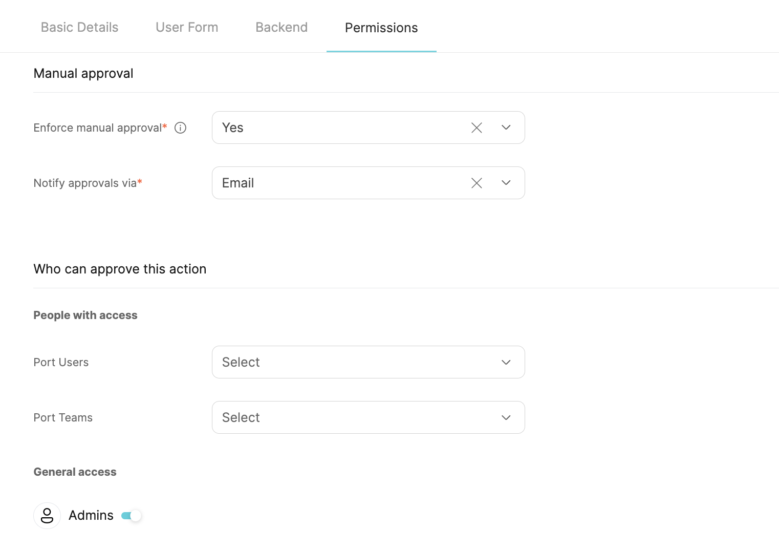 Port provides granular control to make sure every user can only execute and invoke the actions that are relevant for them.