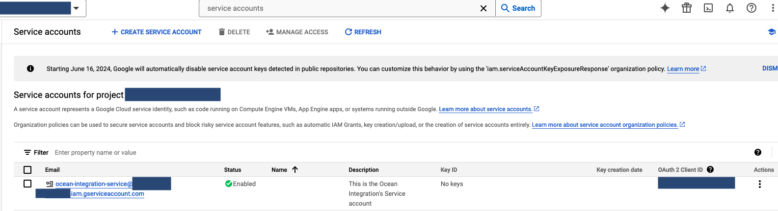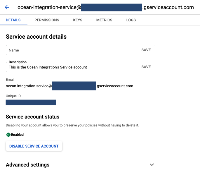ocean_integration_service_account_permissions | ["cloudasset.assets.exportResource", "cloudasset.assets.listCloudAssetFeeds", "cloudasset.assets.listResource", "cloudasset.assets.searchAllResources", "cloudasset.feeds.create", "cloudasset.feeds.list", "pubsub.topics.list", "pubsub.topics.get", "pubsub.subscriptions.list", "pubsub.subscriptions.get", "resourcemanager.projects.get", "resourcemanager.projects.list", "resourcemanager.folders.get", "resourcemanager.folders.list", "resourcemanager.organizations.get", "cloudquotas.quotas.get", "run.routes.invoke", "run.jobs.run"] | False | The permissions granted to the integration's service_account. We recommend not changing it to prevent unexpected errors. |