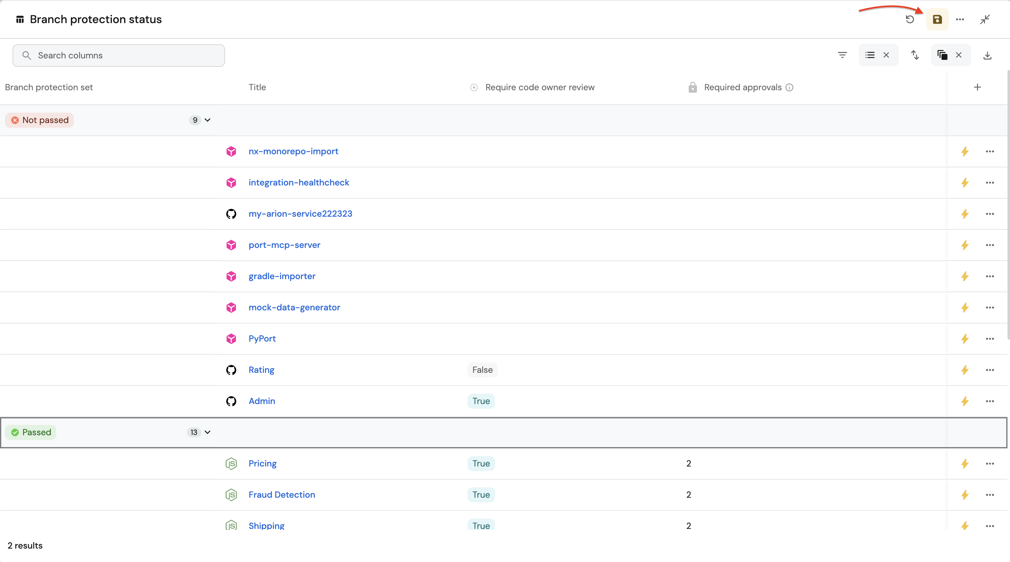 7. Click on the Group by any Column icon and select Branch Protection Status.