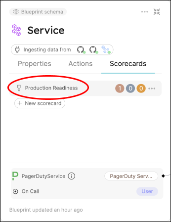 1. Go to your Builder, choose the Service blueprint, click on Scorecards, then click our existing Production readiness scorecard:
