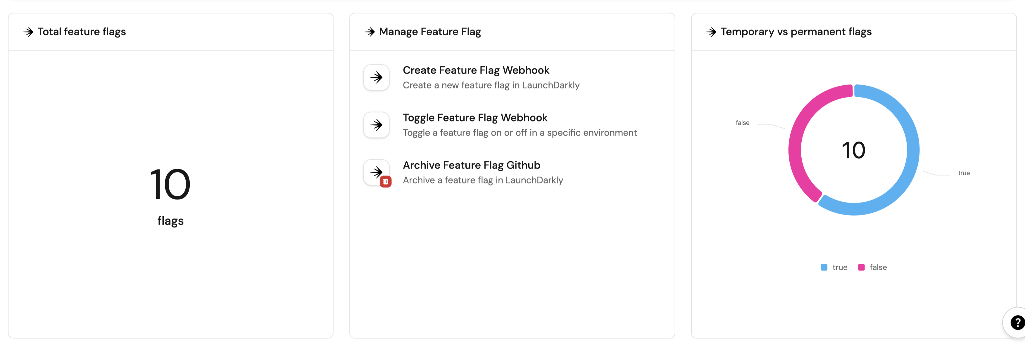 • Build dashboards in Port to monitor and take action on your feature flag resources.