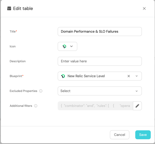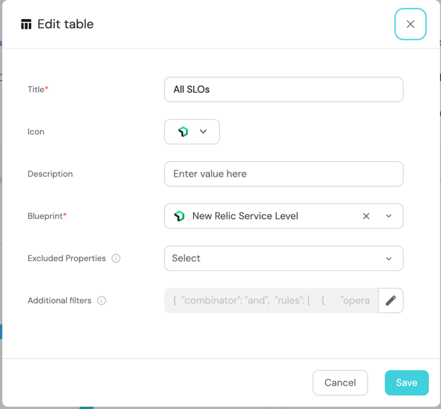 and select Table. - Title the widget All SLOs.