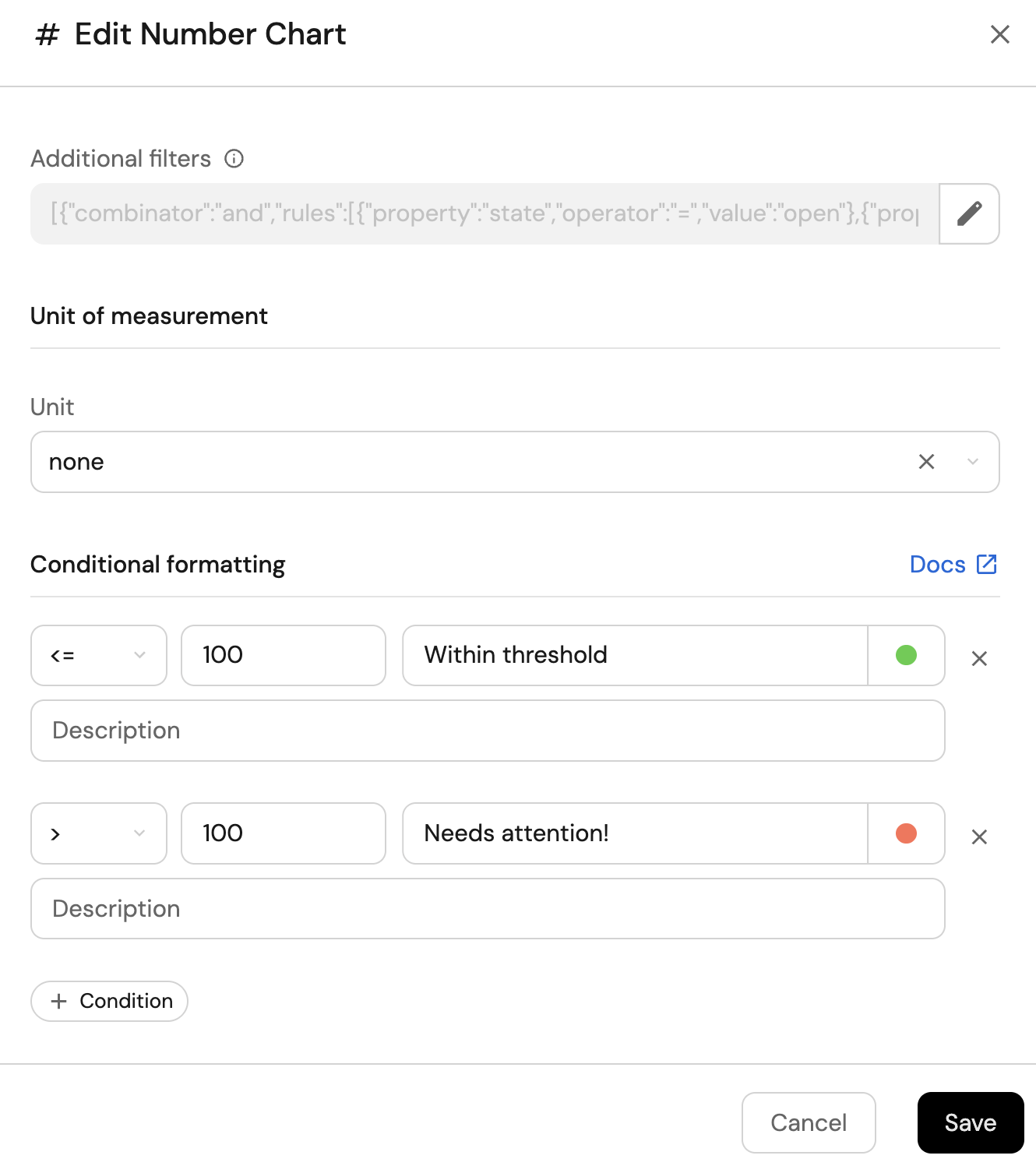 6. You may optionally configure conditional formatting to contextualize the numbers on the widget.